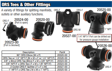 - ORS-M X 1/4" NPT-F X ORS-F X ORS-M