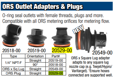 O-ring seal quick-connect outlets that seal around the outside diameter of a tube. Compatible with all ORS metering orifices for metering flow.